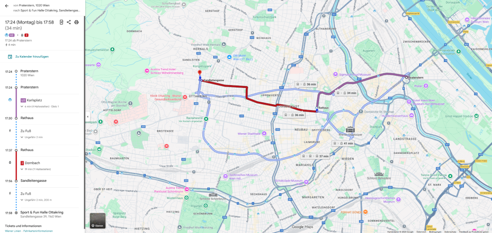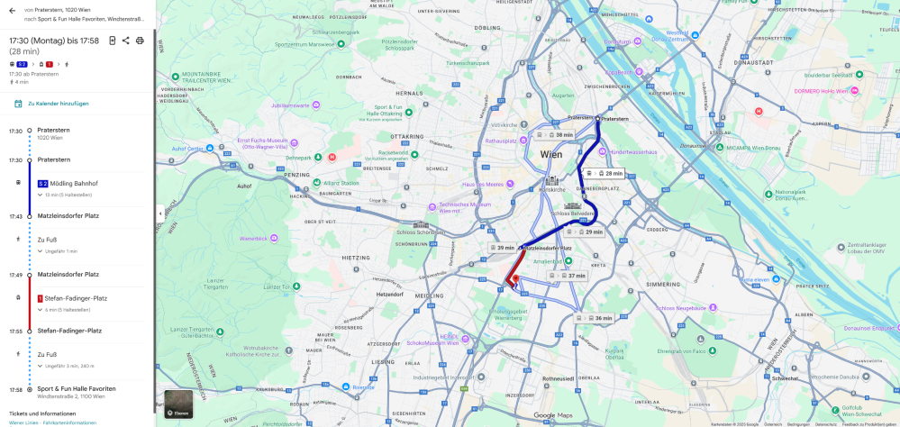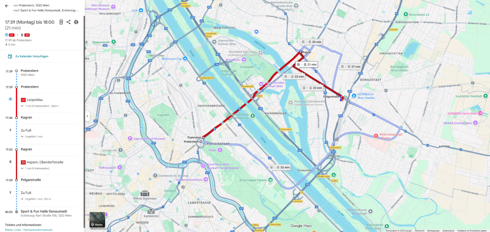 Example route map from Praterstern: